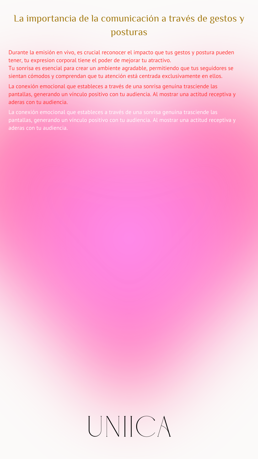 La importancia de la comunicación a través de gestos y posturas / Blog / Por Uniica Durante la emisión en vivo, es crucial reconocer el impacto que tus gestos y postura pueden tener,